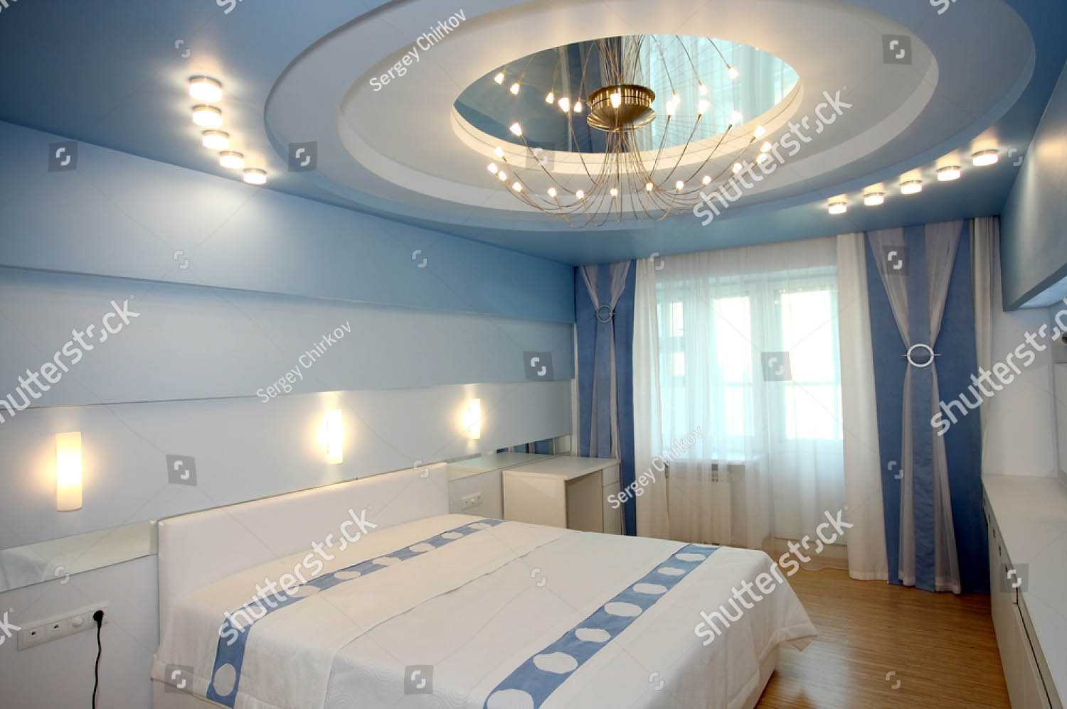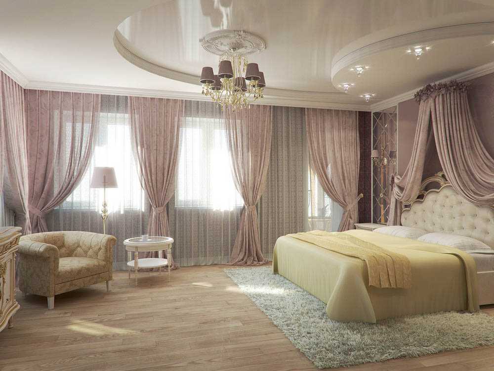 Многоуровневый потолок в спальне