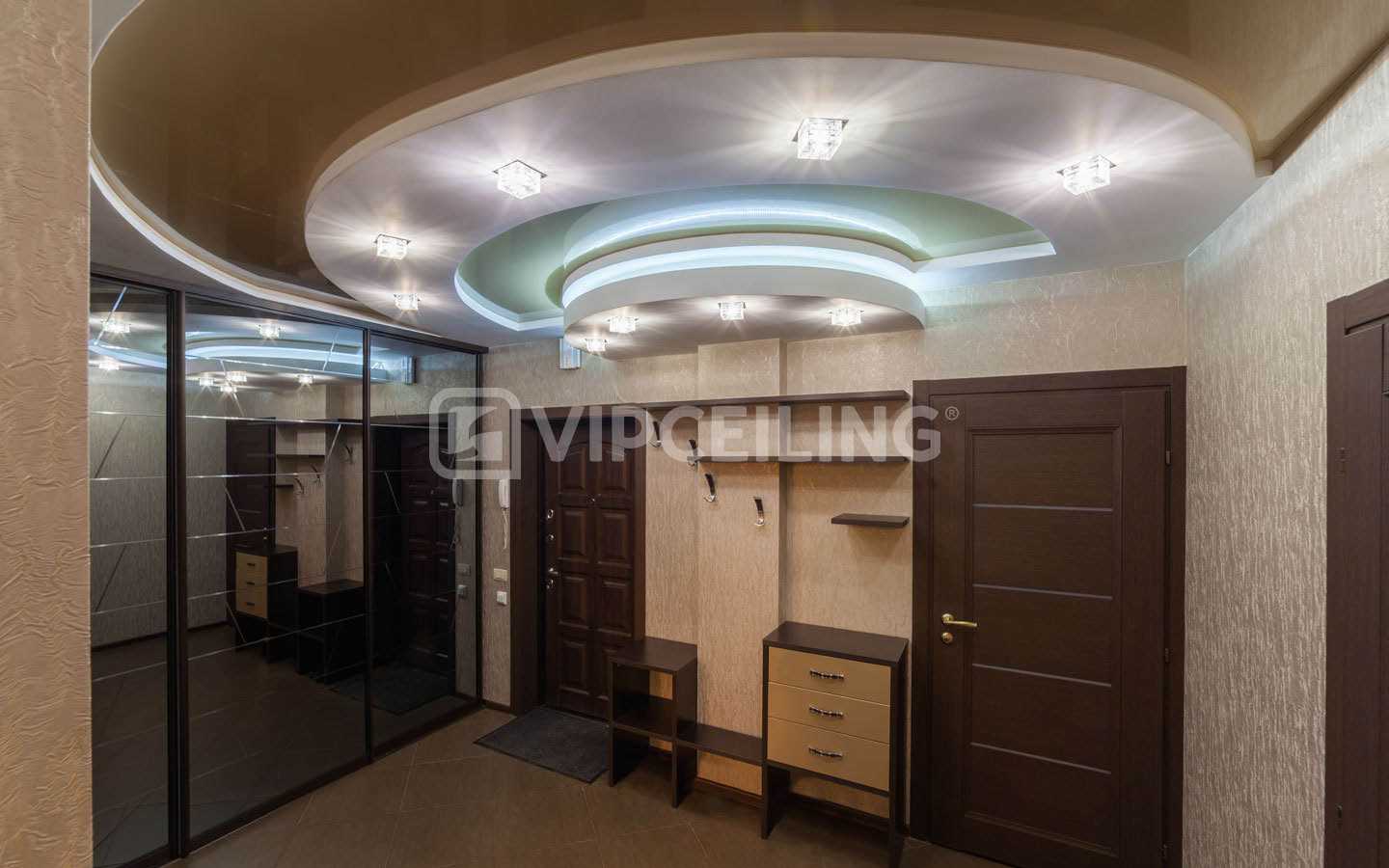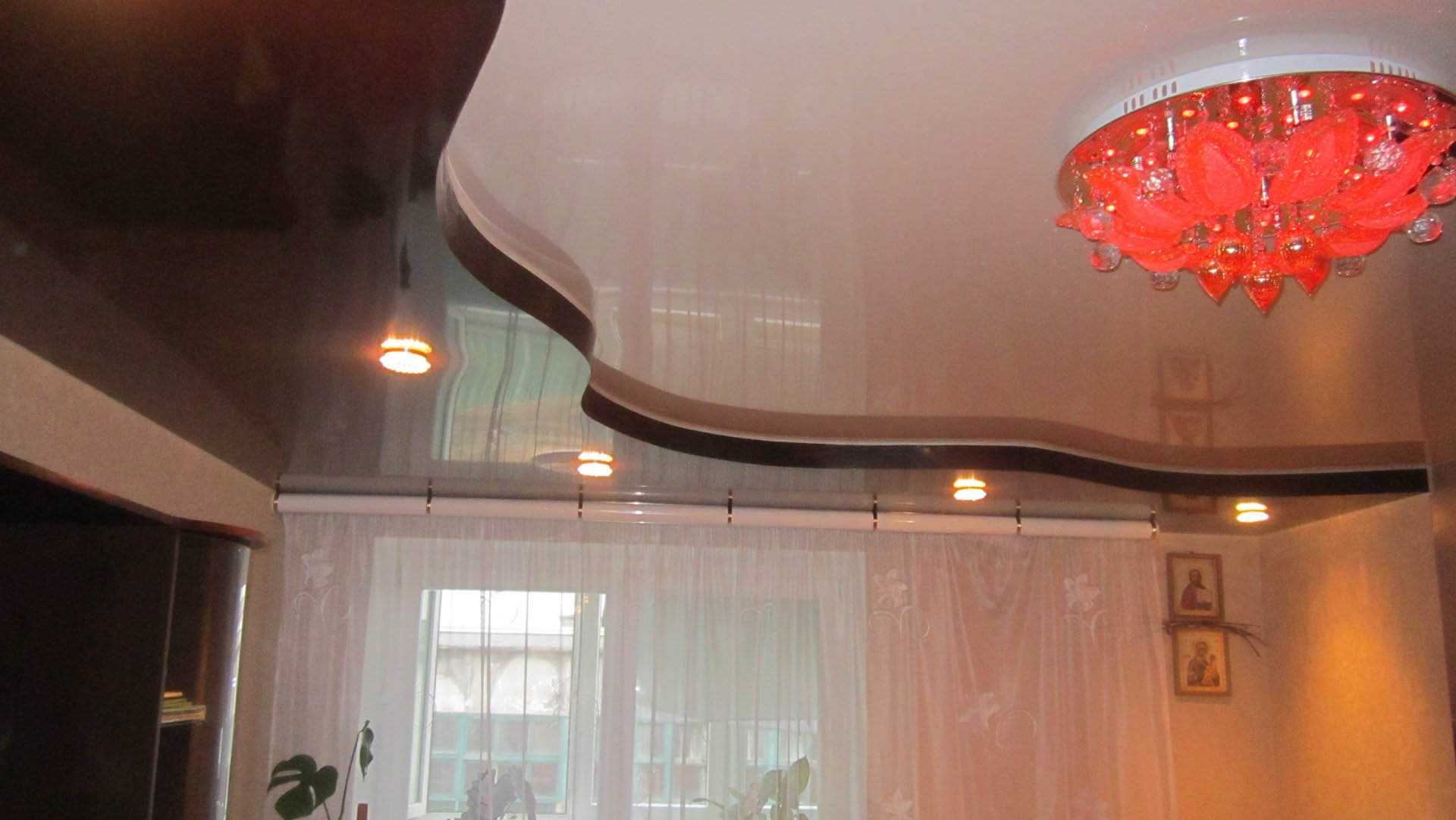 Трехуровневый глянцевый потолокЧетырехуровневая конструкция
