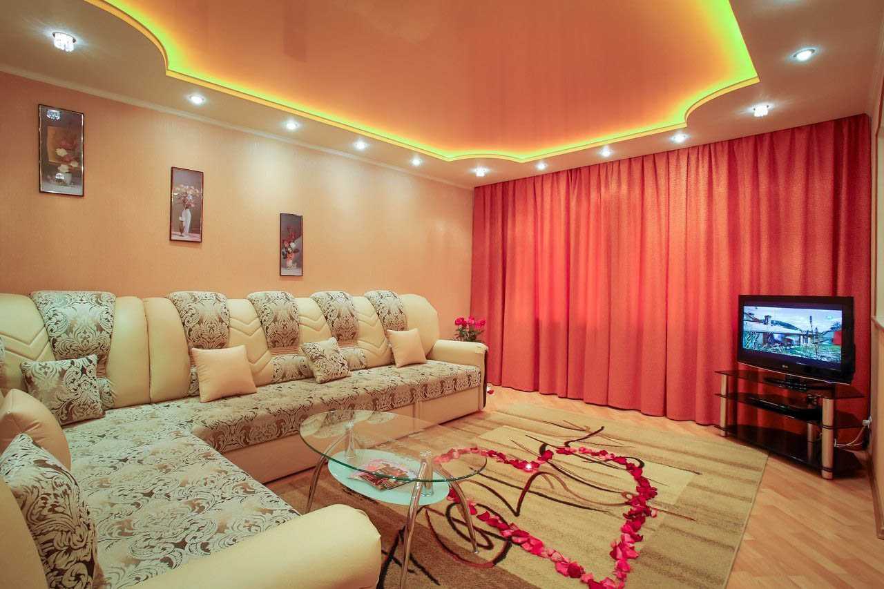 Многоуровневый потолок в гостинойИсточник horoshiepotolki.ru/