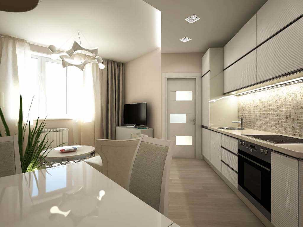 - для зонирования применяется многоцветность, которая будет естественным образом сочетаться с остальной отделкой. Но в маленьких кухнях подобный прием лучше не использовать, ведь он способен сделать помещение еще меньше;
