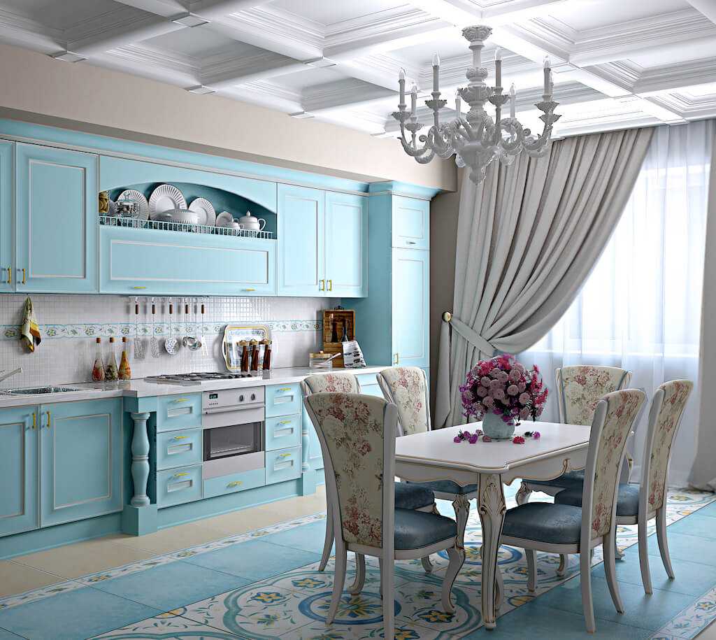 - индиго — считается самым комфортным для оформления кухонного потолка, дарит приятные эмоции, добродушное настроение;