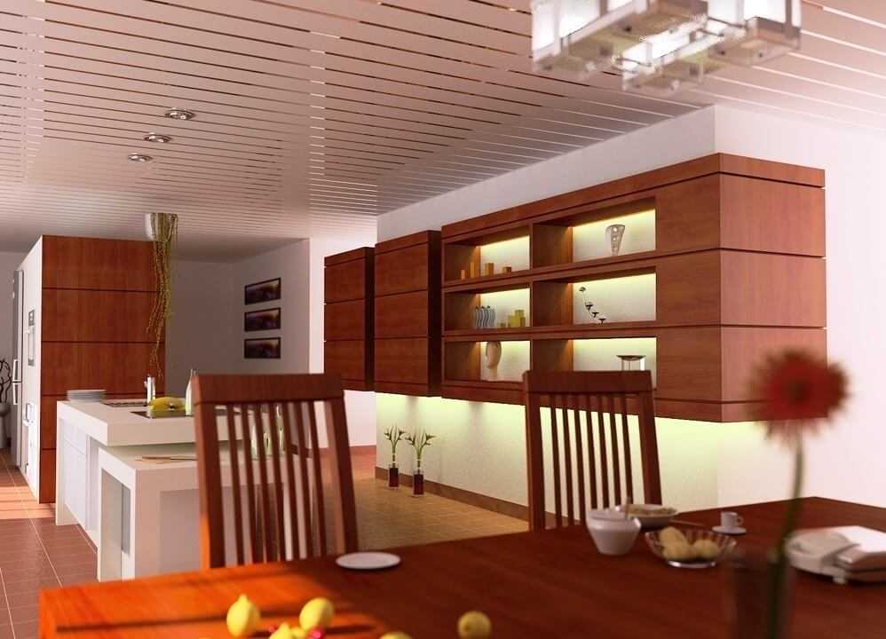 Это главные требования к материалам. Поговорим теперь о том, какая отделка потолка лучше подойдет для кухни. Это может быть любой вариант из нижеперечисленных: