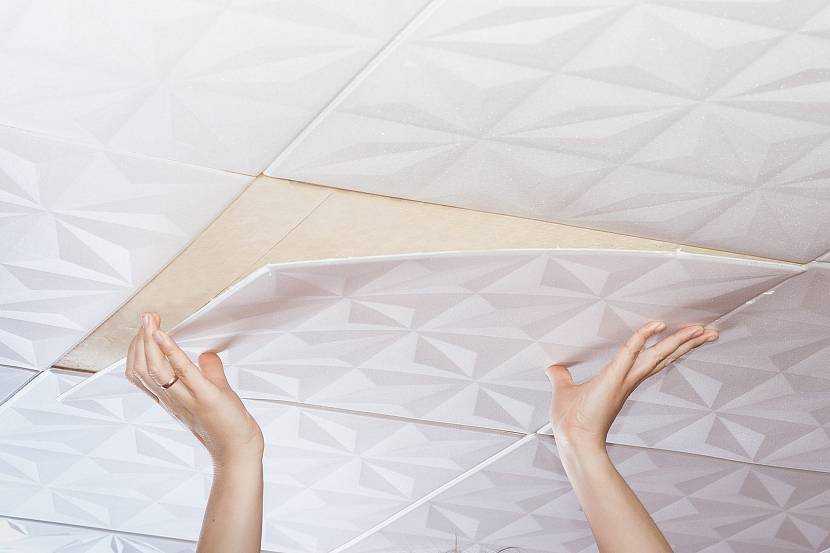 Как клеить потолочную плитку