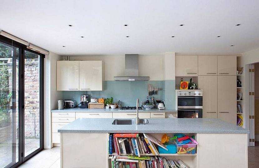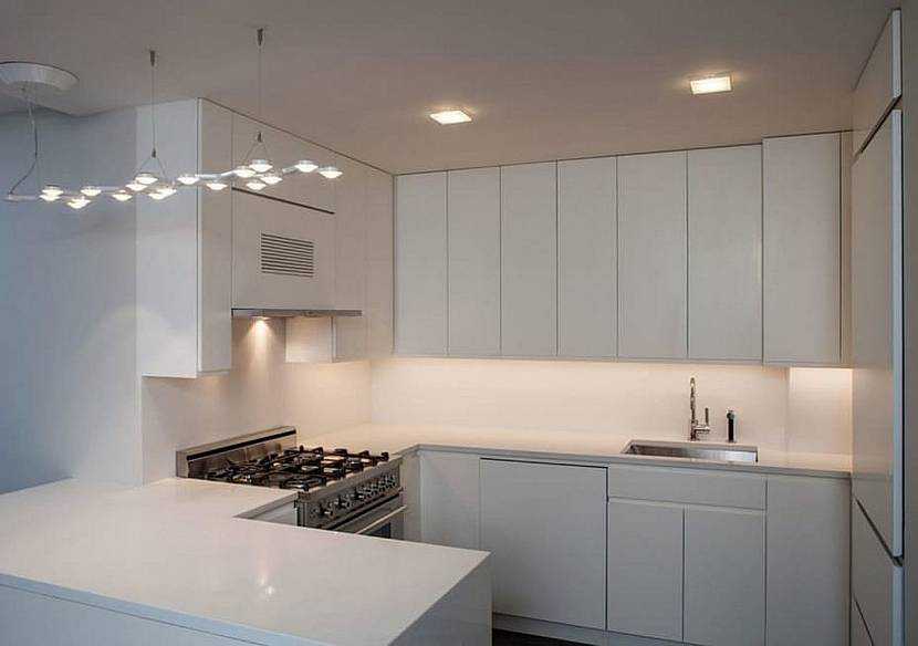 Не забывайте использовать световые решения в разработке своего дизайна. Например, вы можете визуально разделить помещение кухни подсветкой или светильниками разной высоты и интенсивности. Растровые светильники — идеальный вариант для гипсокартонных одноуровневых потолков.