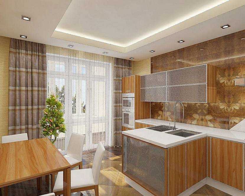 Форма потолков из гипсокартона позволяет не только акцентировать внимание на стиле интерьера, но и добиться визуального изменения формы кухни. Если кухня является квадратной, то можно использовать прямоугольную форму, благодаря которой осуществляется визуальное вытягивание комнаты