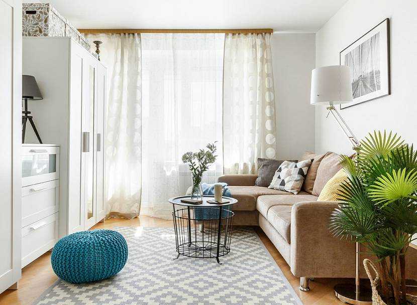 - Для маленькой гостиной в квартирах, типа хрущевка, подойдут одноуровневые конструкции или многоуровневые модели с частичным расположением по потолочной поверхности.