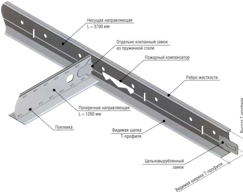 Для подвесного потолка «Армстронг» необходимо использовать Т-образный продольный и поперечный профиль