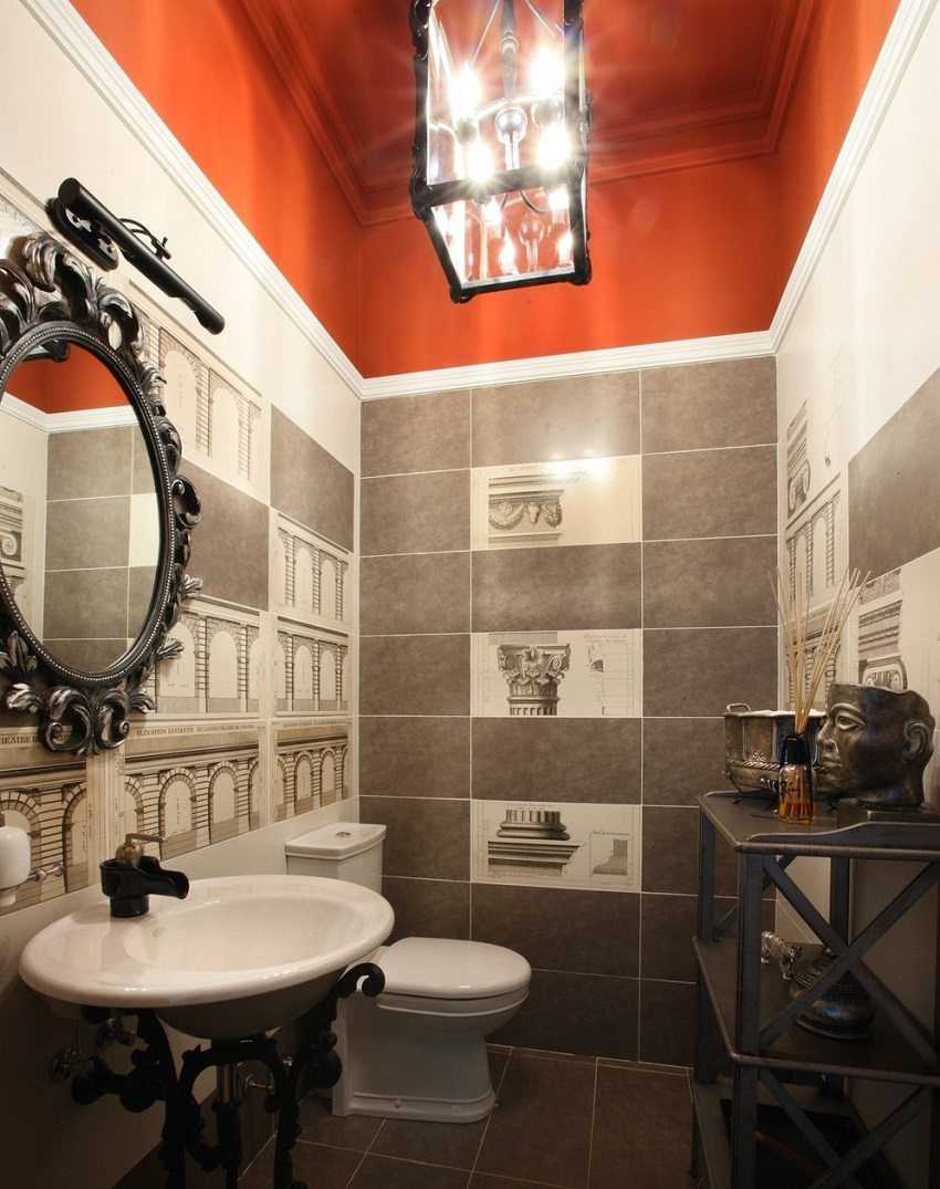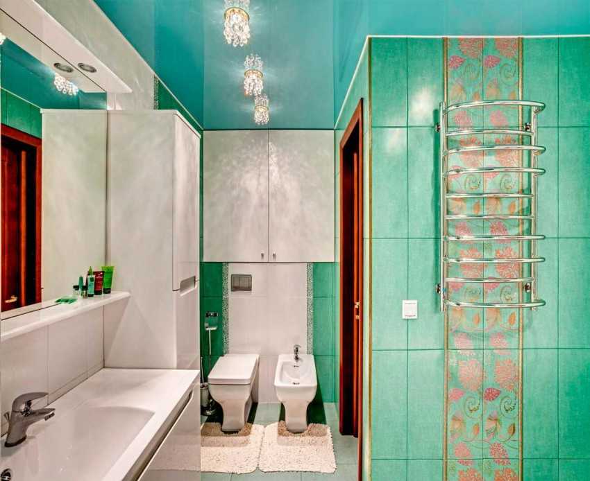 То же касается совмещенного санузла. Далеко не всегда ванная с туалетом имеет хорошую систему вентиляции и продуманность систем коммуникации. На покрытие создается колоссальная нагрузка, которая иногда деформирует используемый материал. Страдает внешняя привлекательность, меняется цвет, появляется характерная желтизна. Сложности вызывает и ломаная перспектива, которая вынуждает ограничить приемы оформления.