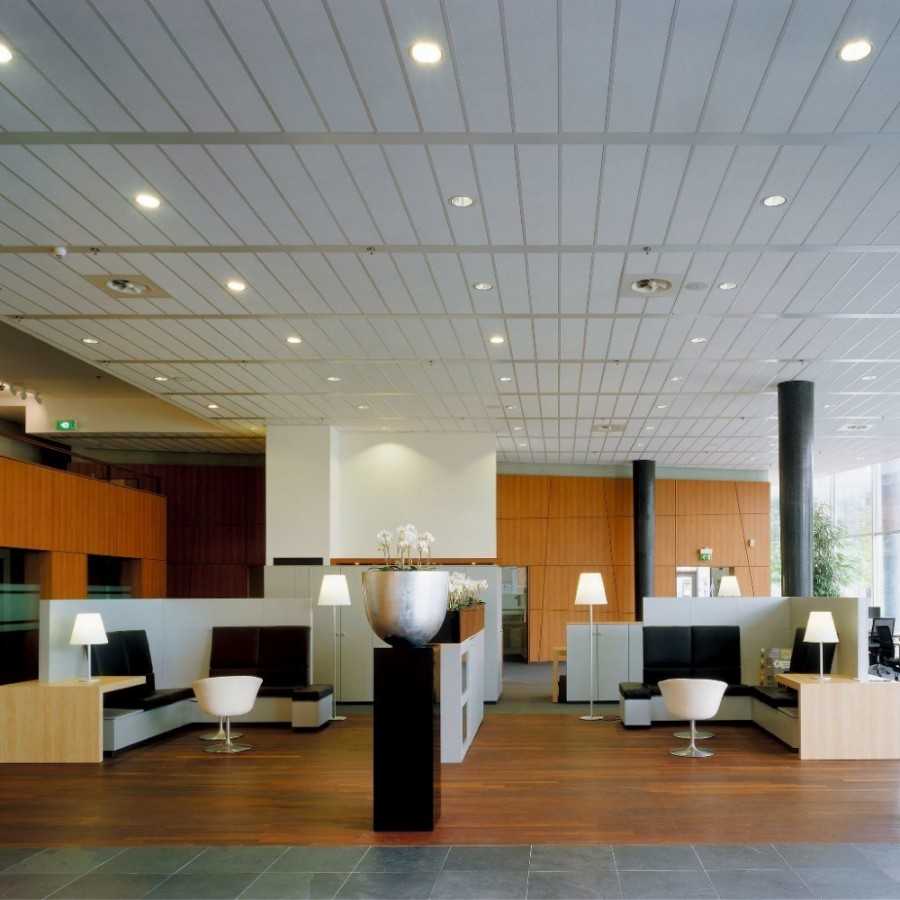 - экономия электрической энергии: так как поверхностный слой реечных потолков отражает свет, поэтому возможно применение освещения меньшей мощности;