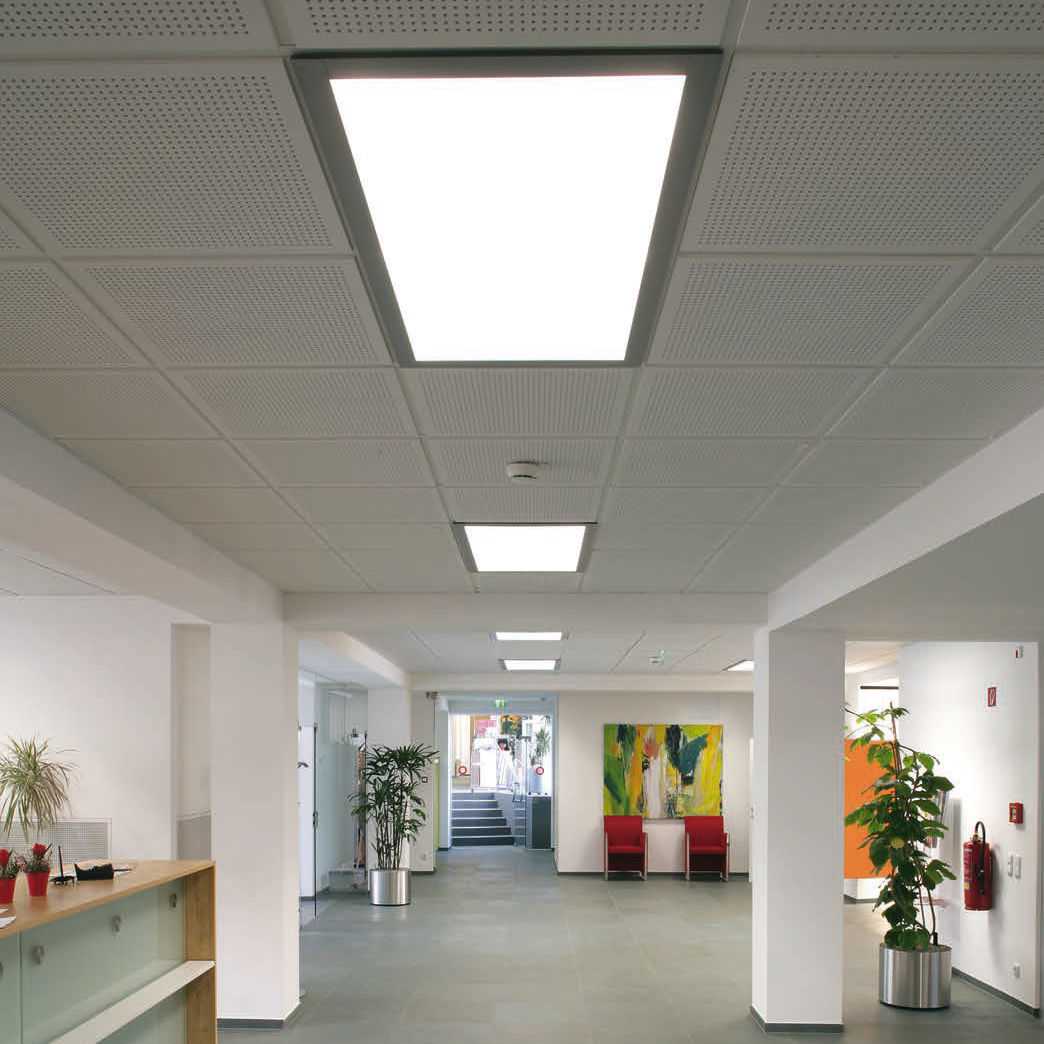 - Перфорированные металлические покрытия не препятствуют естественной вентиляции запотолочного пространства. Они хорошо гасят звуковые волны.