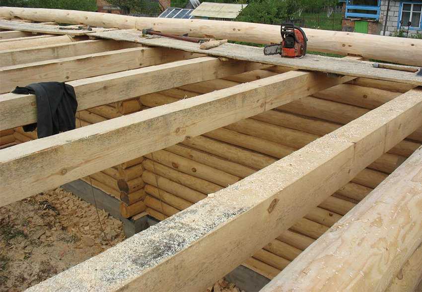 При монтаже деревянные балки перекрытия укладываются на поперечные опоры, которыми может служить дополнительный брус, либо армопояс, залитый по периметру кладки стены. Поперечные опоры служат для равномерного распределения нагрузки на стены, и далее на фундамент дома. Части балок, укладываемые на стены, оборачиваются гидроизоляционным материалом. Обычно используют рубероид, при этом торцы не изолируют, что позволяет балке «дышать».