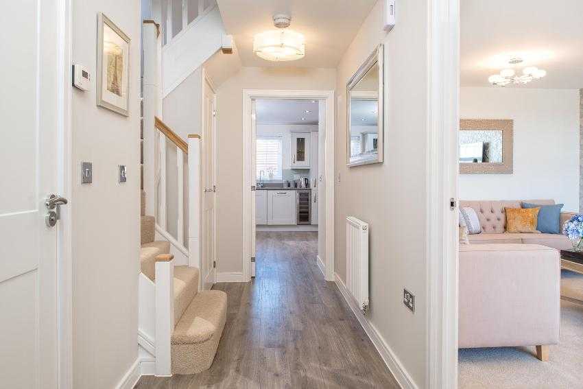 Ему положено выделяться среди других элементов интерьера. Чтобы даже в полутьме человек мог безошибочно найти дорогу в комнату. Напольное покрытие зачастую характеризуется приглушенными тонами, но в том же температурном спектре.