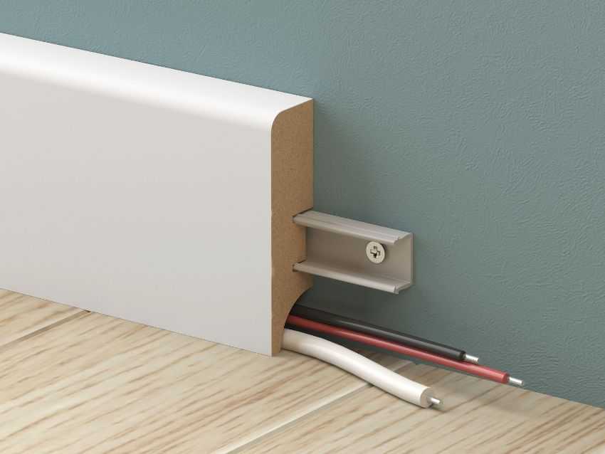 МДФ-плинтус может имееть встроенный канал для прокладывания проводов внутри
