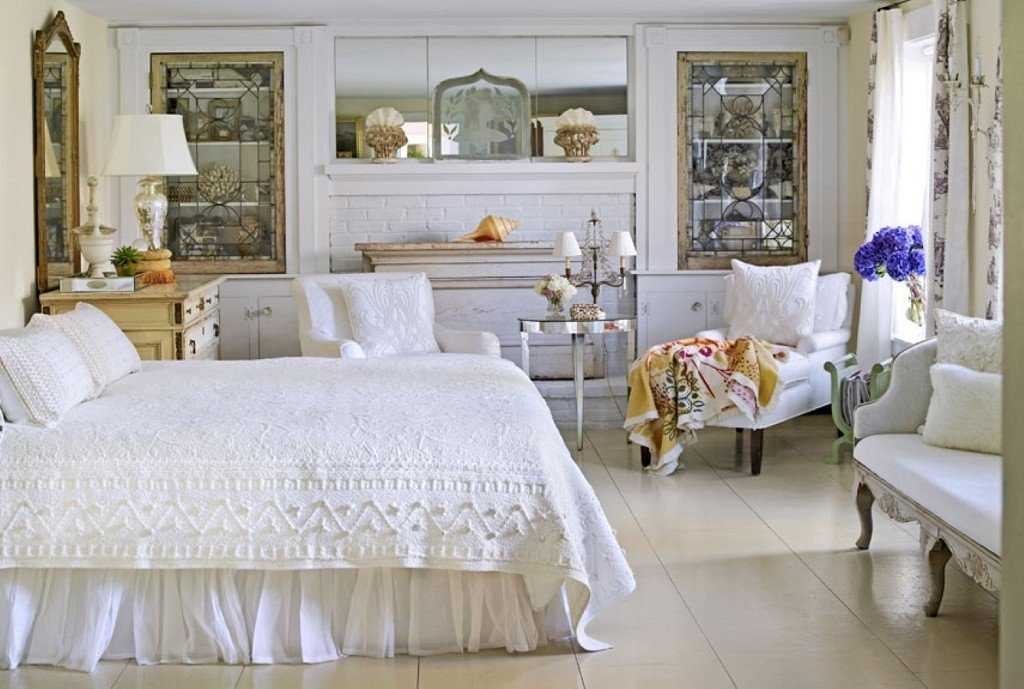 - аксессуары играют важнейшую роль и должны вносить уют и душевность. Используется эмалированная посуда, вязаные салфетки, льняные занавески, цветы, зеркала в простых рамах, присутствует обилие текстиля (ситец, лен, хлопок). Преобладающие рисунки: клетка, полоска, горошек.