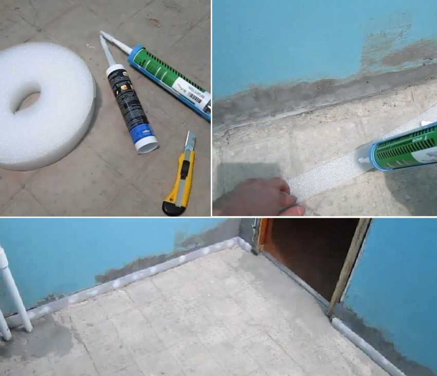 Перед началом работ в ванной необходимо тщательно очистить поверхность стыков, пола и стен от всевозможного мусора, провести обеспыливание, обработать поверхность грунтовкой для укрепления поверхности и повышения ее адгезионных свойств