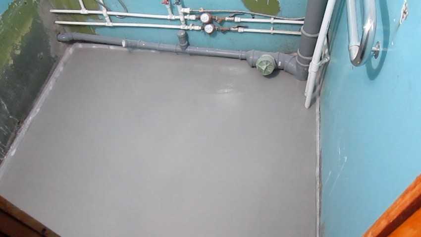 В случае оборудования теплого пола обмазочную гидроизоляцию наносят поверх стяжки