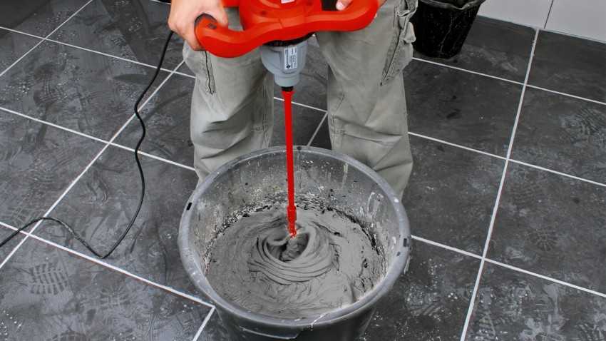 Для стяжки в ванной рекомендуем применять полусухой раствор, толщина в пределах 5–10 см. Для изготовления раствора используйте песок (три части) и цемент марки не ниже М300 (одна часть). Воду добавляйте порционно, раствор должен быть хорошо вымешанным и не иметь много влаги. Проверяйте консистенцию рукой, после сжатия в кулаке вода между пальцами не должна проступать и одновременно сохраняться форма.