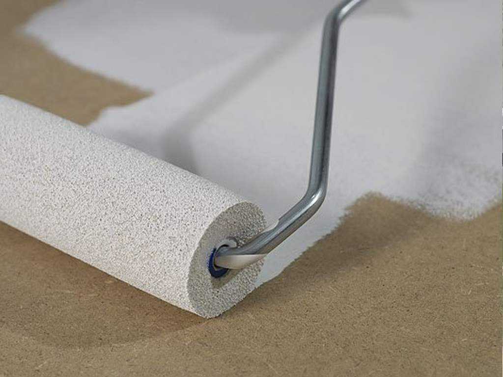 Нанесение грунта. Состав в небольшом количестве наливается в емкость и размешивается. В качестве инструмента используется валик на длинной ручке, в труднодоступных местах – кисть с жесткой щетиной
