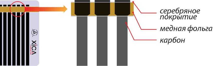- некоторые производители добавляют в карбоновую пасту серебро, чтобы максимально снизить ее сопротивление току и улучшить контакт с шиной. Со временем холодная шина может отслоиться от постоянно нагретой карбоновой части, а результатом может стать искрение и снижение мощности нагрева. Крупные компании, которые постоянно совершенствуют свою продукцию, придумывают разные способы избежать искрения. Наиболее эффективная разработка — расположение сетки полос из серебра на границе карбонового покрытия и медной шины. Подобную конфигурацию называют антиискровой сеткой;