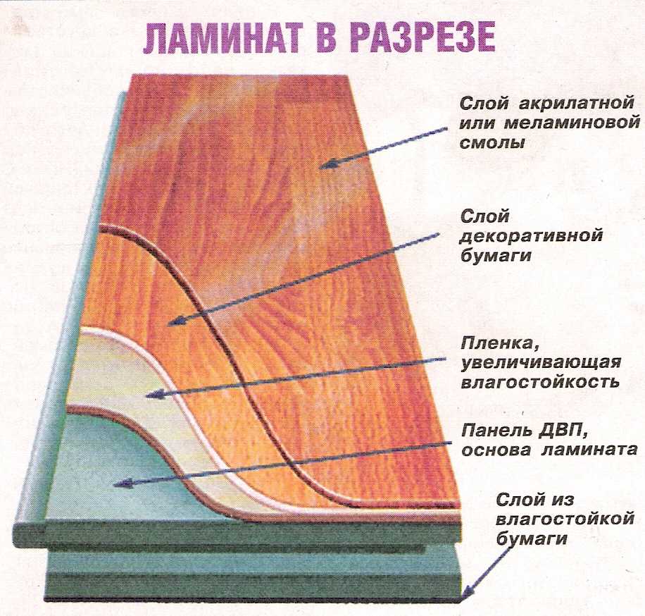 Это напольное покрытие представляет собой многослойный материал с основой из ДСП или ДВП. Слои пропитаны синтетическими смолами, а верхний слой состоит из бумаги, на которой можно напечатать любое изображение. Чаще всего ламинат имитирует натуральное дерево.