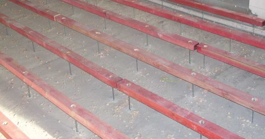 На деревянный пол полусухую выравнивающую стяжку можно устанавливать лишь после того, как доски полностью просушатся. Происходит это не ранее, чем через 3 года после их настила.