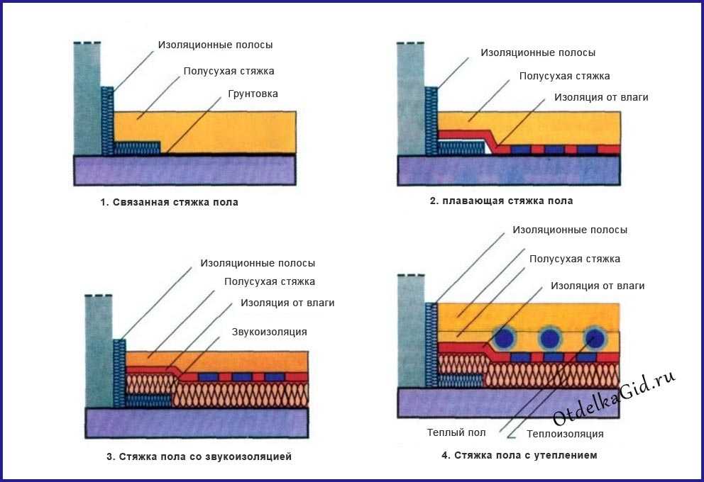 Схемы укладки полусухой стяжки: разные технологии