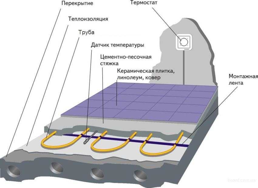 Пример обустройства теплого пола с датчиком температуры и термостатом