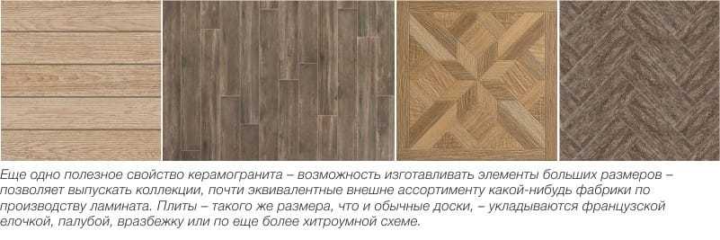 Также существуют варианты, когда, керамогранит имитирует натуральные материалы: