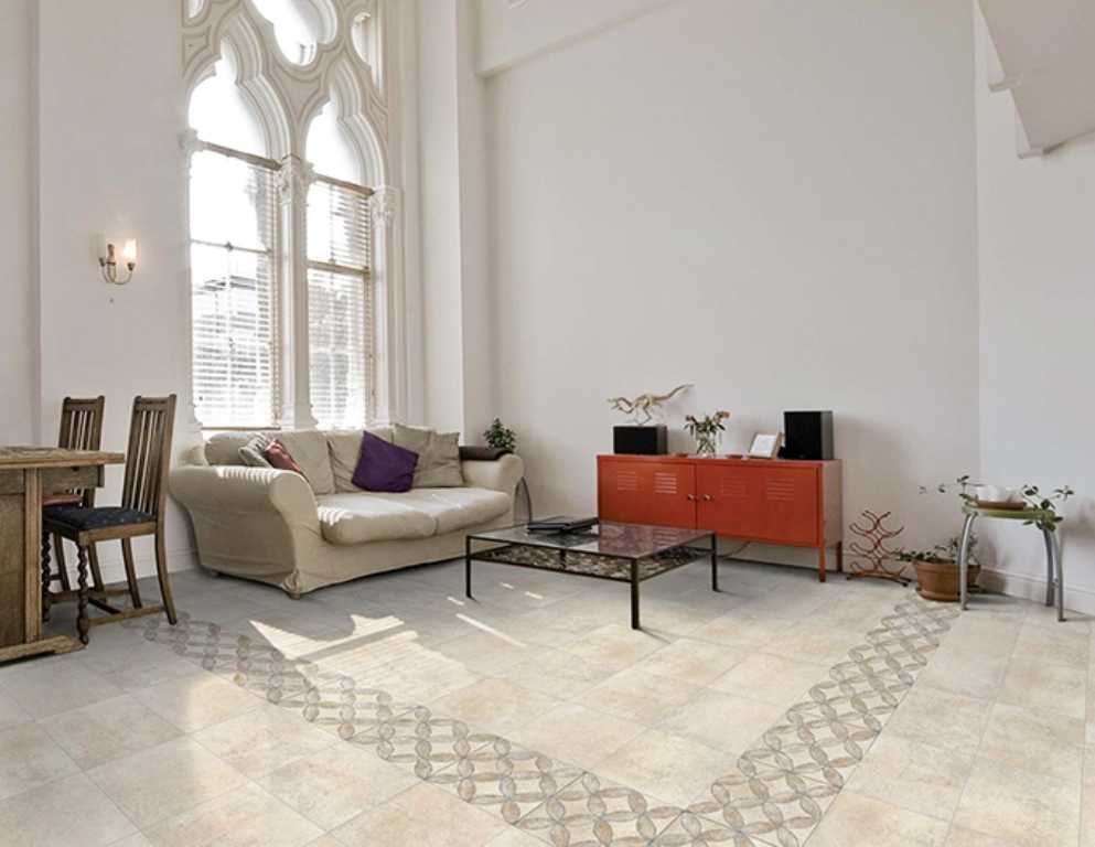 Последний совет — использование мелких декоративных деталей вперемешку с крупноформатными плитами. Белые вставки, например, сделают темный пол светлее. А черные помогут расставить акценты на слишком светлом.