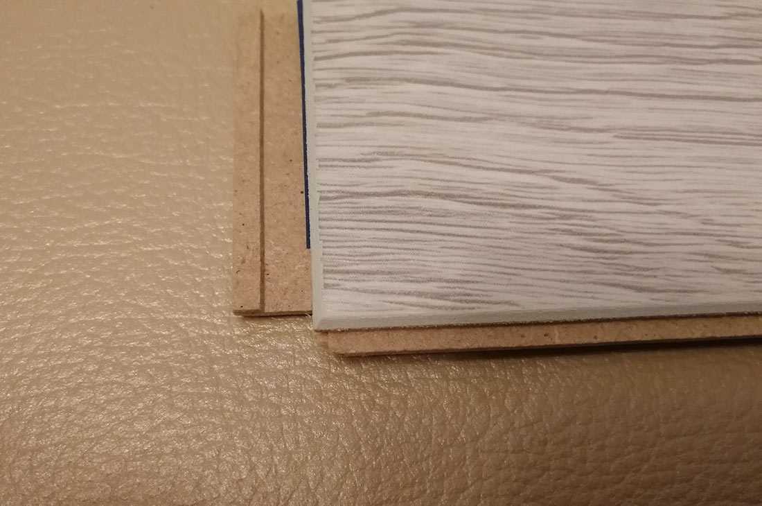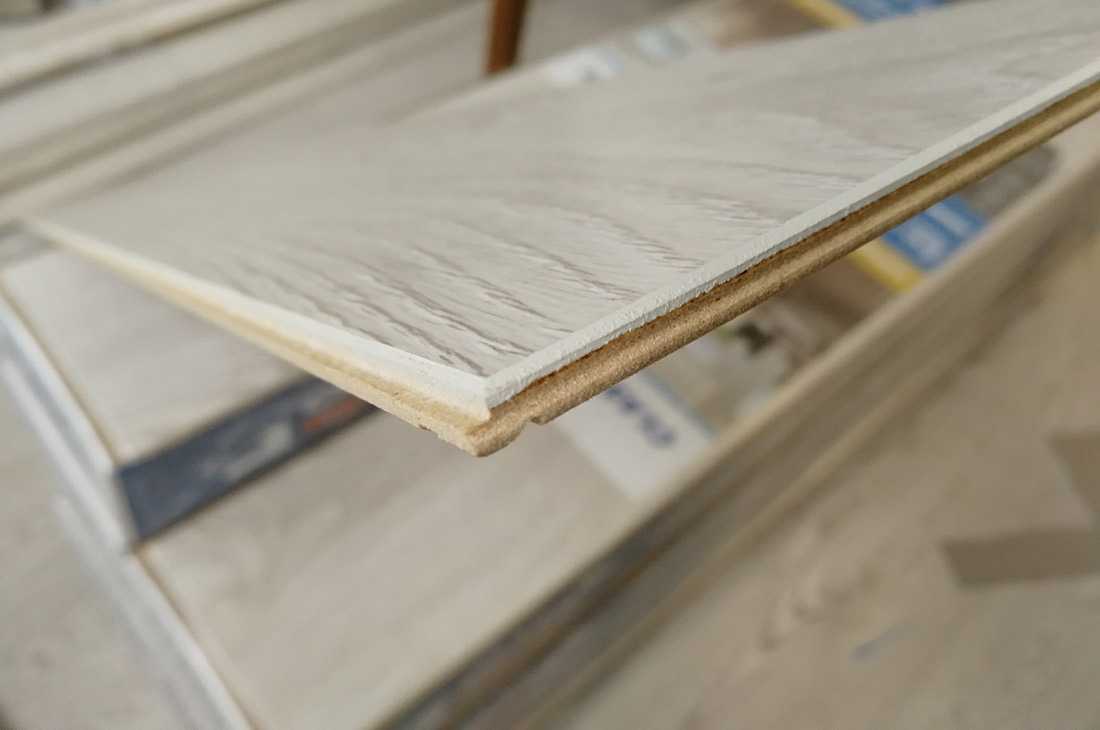 Толщина Classen Impression 4v составляет 10 мм, а плотность древесного композита внушительные 870 кг/м3. По опыту распиловки материала электролобзиком заявляю, материал пилится тяжело, пилки быстро выходят из строя. А плотность плиты напрямую влияет на прочность замков и влагостойкость самого материала. Соответственно, чем больше значение, тем лучше показатели.