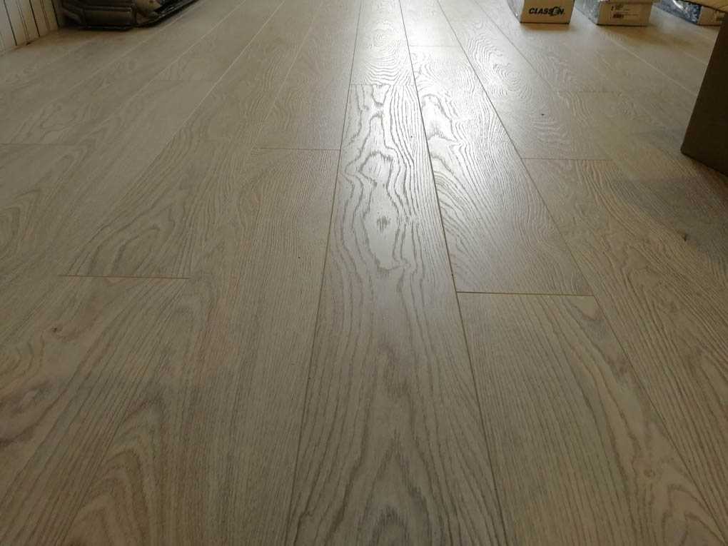 - Тем временем, компаньон настилал белый цвет ламината. Одна из причин, почему решил обновить отзыв – наличие двух расцветок Classen Impression. У него дела обстояли получше, хотя белый цвет подчеркивает недостатки геометрии, и должно быть наоборот, более заметно. Но перейдя мне на помощь по укладке темного ламината, так же подтвердил, что собирается хуже. По всей видимости, качество может зависеть от партии.