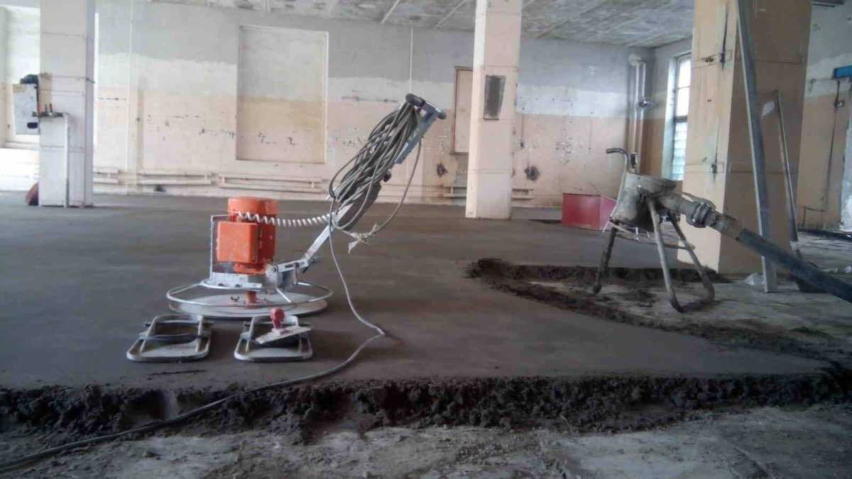 Обустройство по большой площади редко выполняется ручным способом – для этого нанимается строительная бригада с наличием специально оборудования. Затирочная машина позволяет выполнять стяжку механизированным способом, значительно упрощая и ускоряя процесс затирки раствора.