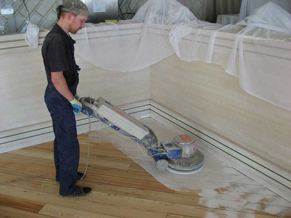 Завершаются подготовительные работы шлифовкой паркета (перепады высоты незначительные) или циклеванием, когда нужно убрать бугорки высотой 4-7 мм.
