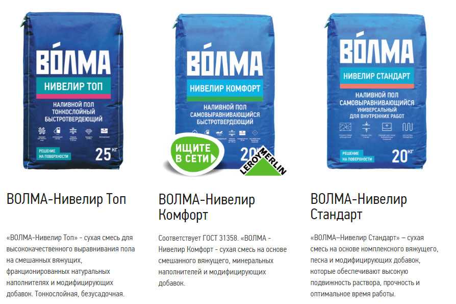 Популярные марки наливного пола Волма