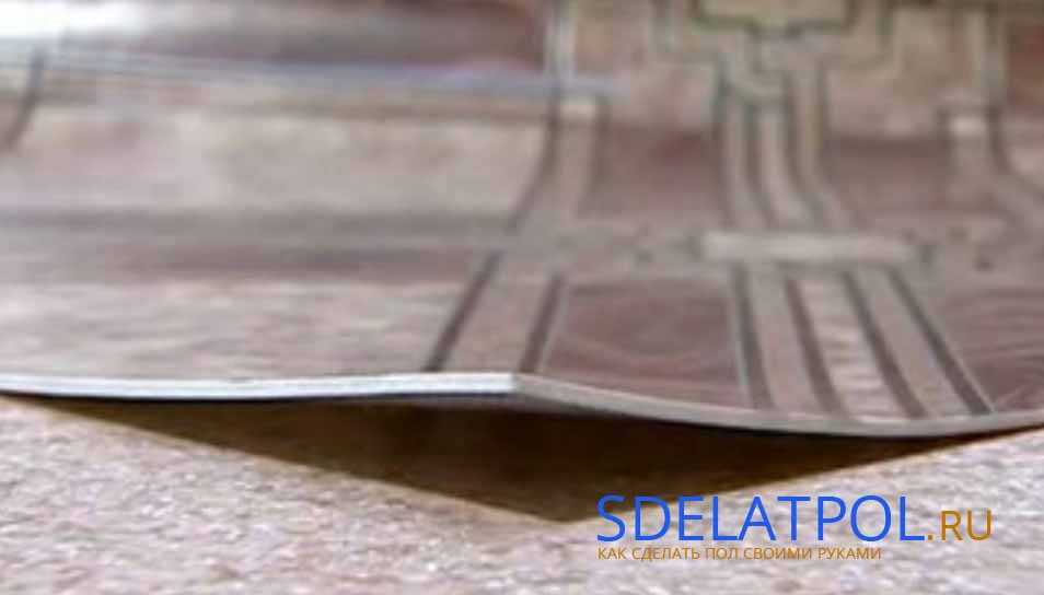 - линолеум стелют на старое покрытие. В такой ситуации основание должно быть максимально ровным, без изъянов, в противном случае старый материал лучше демонтировать;