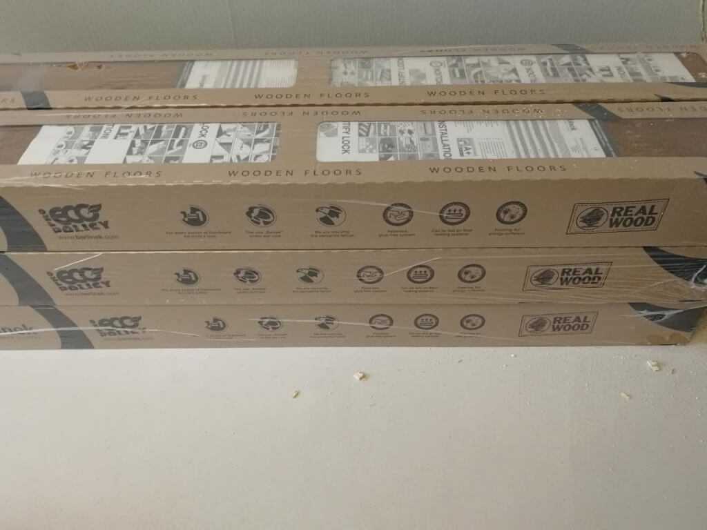 Так сложились обстоятельства, что заказчик заказал не тот герметик и в срочном порядке его отправили за необходимым товаром. Предварительно договорившись, что настилаем в том месте, где будет стоять мебель без воска.