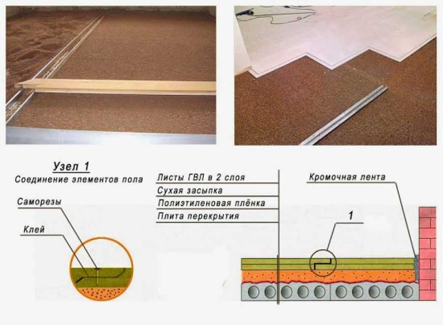 Такой вариант сухой стяжки не забирает высоту помещения и не требует применения рулонного материала.