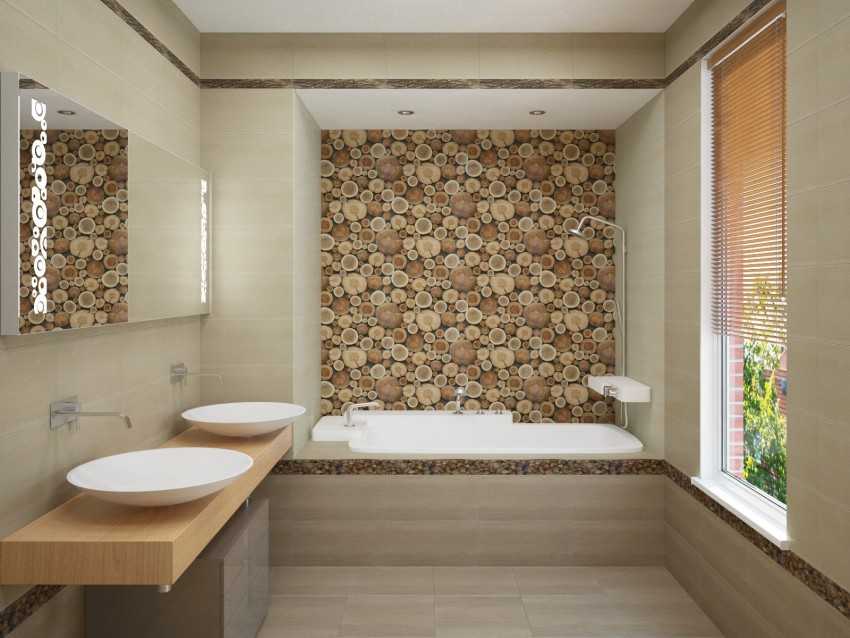 Мозаичная не контрастная плитка использована в качестве настенного панно в ваннойИсточник interiorno.ru