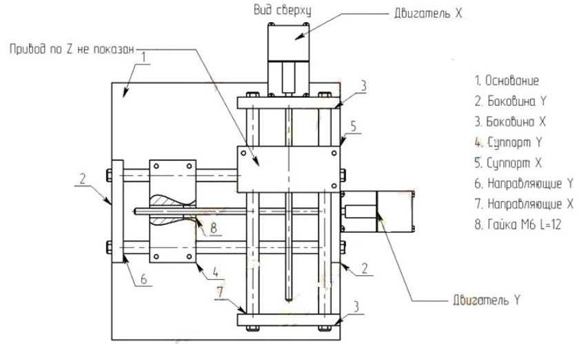 На первом этапе составляются для фрезерного станка по дереву своими руками чертежи, которые включают информацию о размещении всех компонентов конструкции, их размеры, а также способы фиксации.