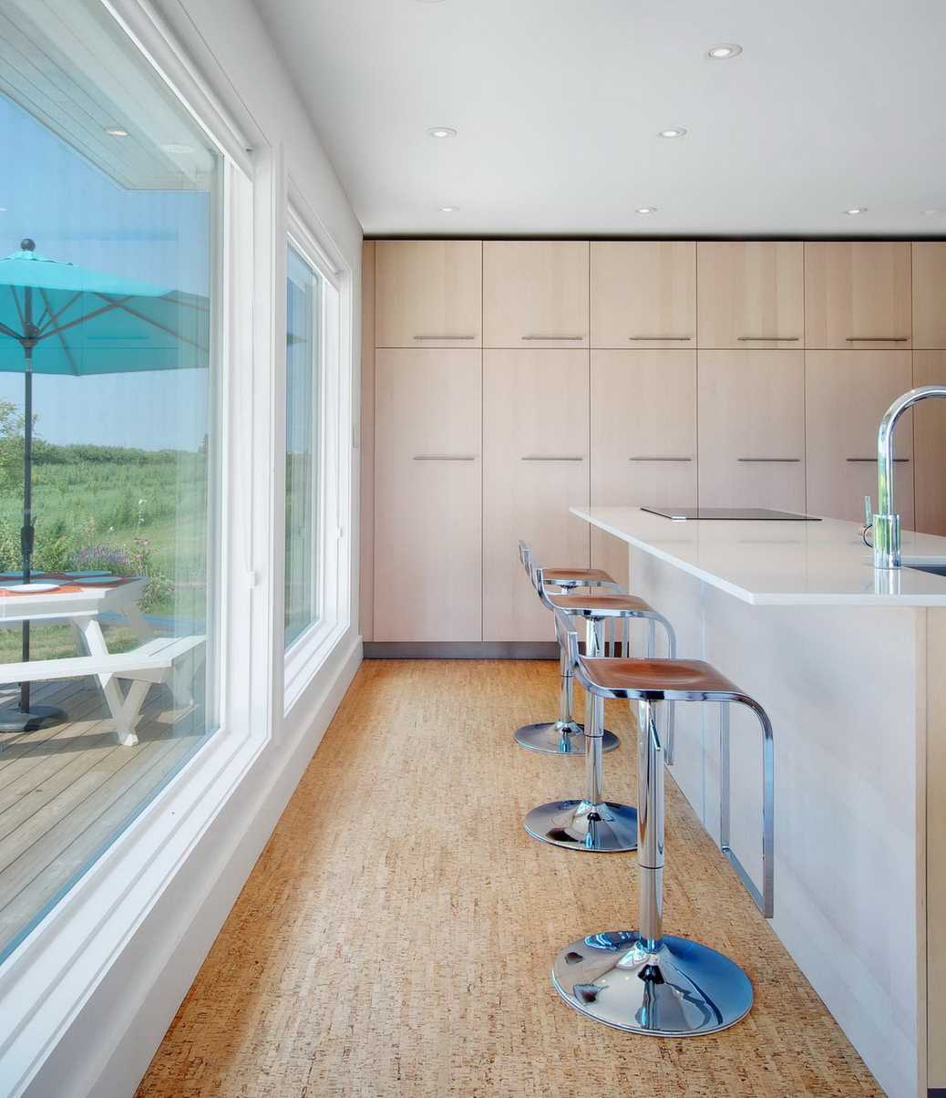 Только посмотрите, как стильно и гармонично может смотреться пробковый пол на кухне!