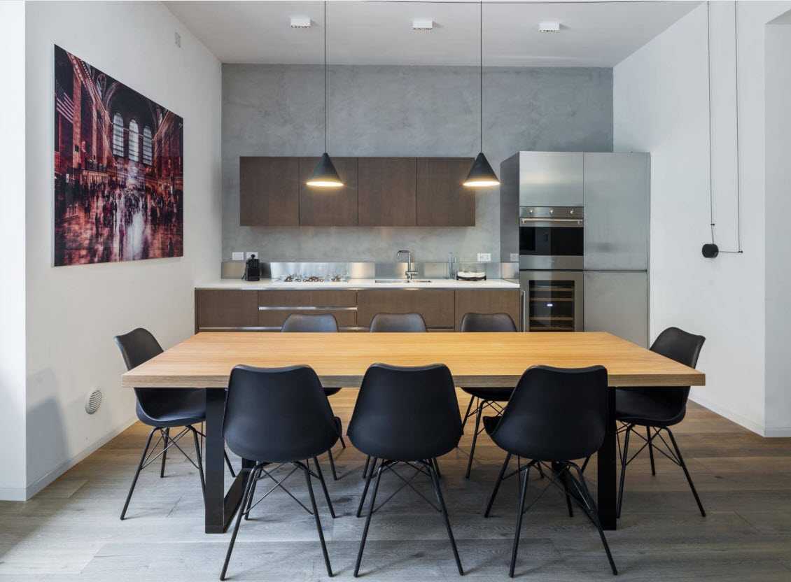 С другой стороны, многие дизайнеры сейчас приветствуют использование не слишком традиционного ламината — имитирующего керамику, мраморные разводы, различные типы камне или металл.