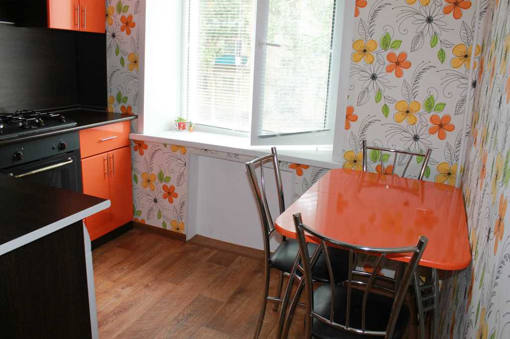 - Если кухня окнами выходит на солнечную сторону, выбирайте тонированную пробку, покрытую краской и лаком. Это объясняется тем, что под прямыми лучами материал теряет насыщенность цвета.