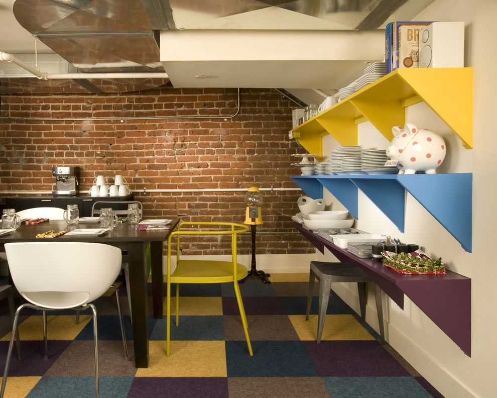 Промышленный городской стиль – один из популярных в оформлении жилых помещений для молодежи и креативных компаний. Сделанный из плитки, дерева или однотонный наливной, он гармонично сочетается со стилизованной грубостью кирпичных стен, и позволяет помещению выглядеть менее брутально.
