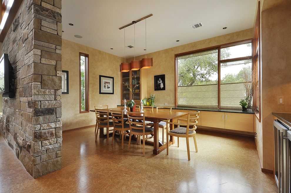 При использовании пробкового пола можно обеспечить различные дизайнерские решения