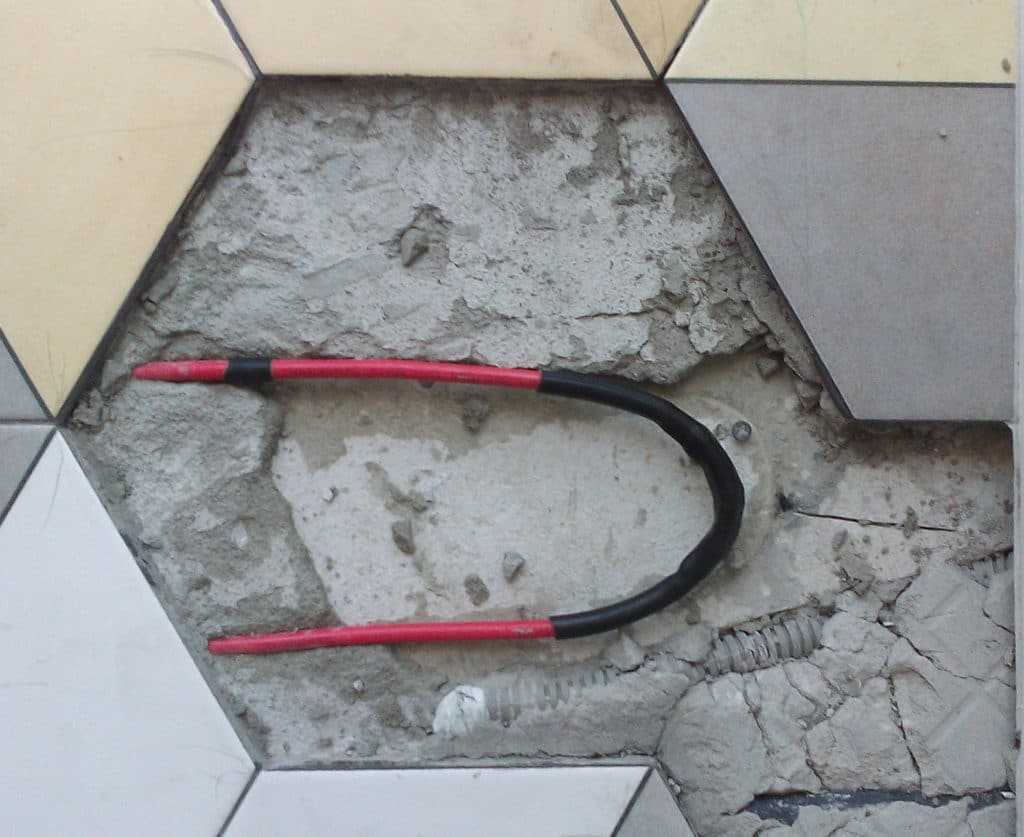 На место пробоя надевается гильза и изолируется с помощью термоусадки. Запускается генератор, выполняется повторная проверка, после которой можно заделать чистовое напольное покрытие.