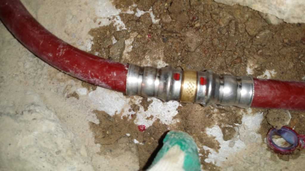 После того, как место протечки найдено, необходимо расчистить доступ к трубам теплых полов, чтобы поставить муфту. С каждой стороны от трубы должно быть не менее 10-15 см. Только таким образом получится использовать ручной пресс под натяжной фитинг, если был смонтирован теплый пол из сшитого полиэтилена.