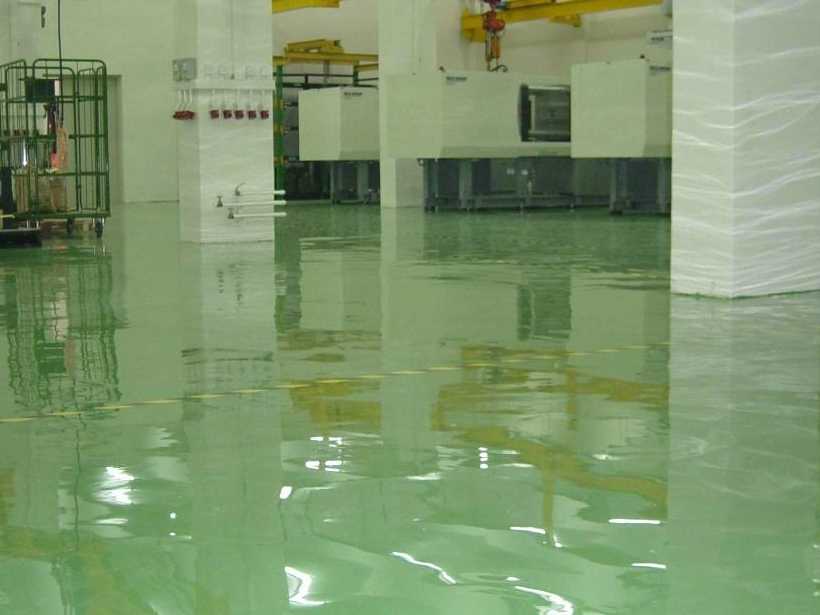 При применении состава на основе эпоксидных смол требуется более долгий процесс отвердевания — до 2 суток. Время высыхания будет зависеть от температуры в помещении, от применяемого материала. Такие поверхности являются устойчивыми и прочными к воздействиям окружающей среды, их применяют в различных производственных условиях, в больницах, промышленности.