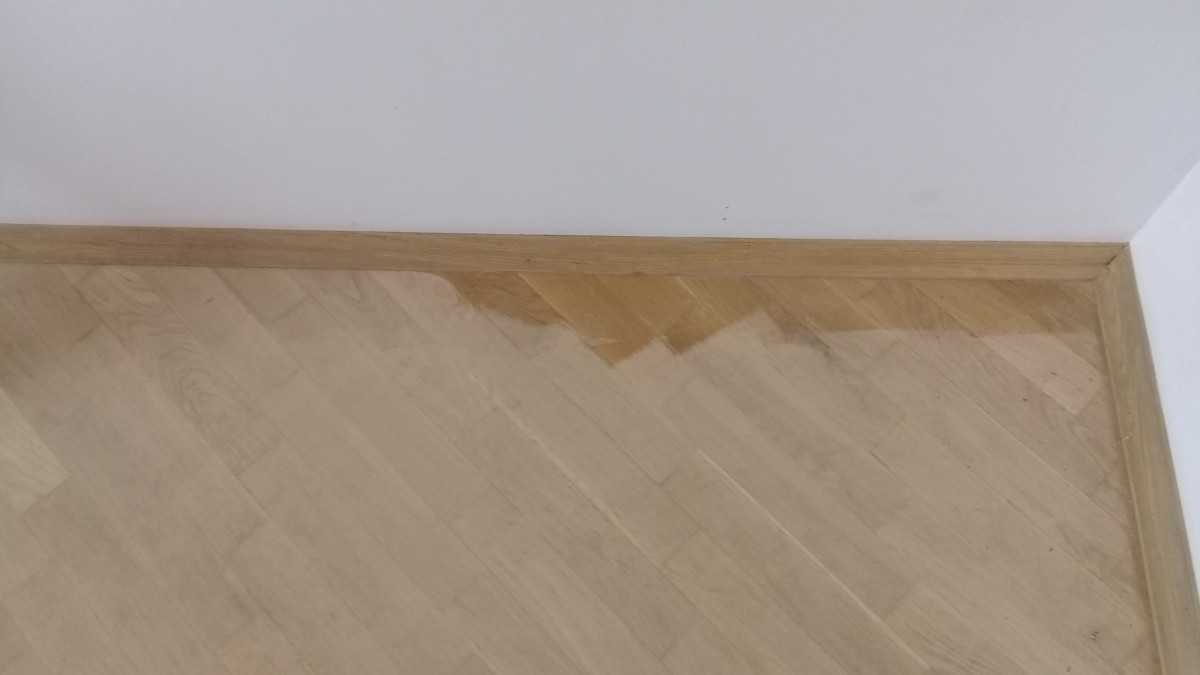 В процессе эксплуатации лаковый слой на паркетном полу постепенно истирается, лишая его единственной защиты от воды.