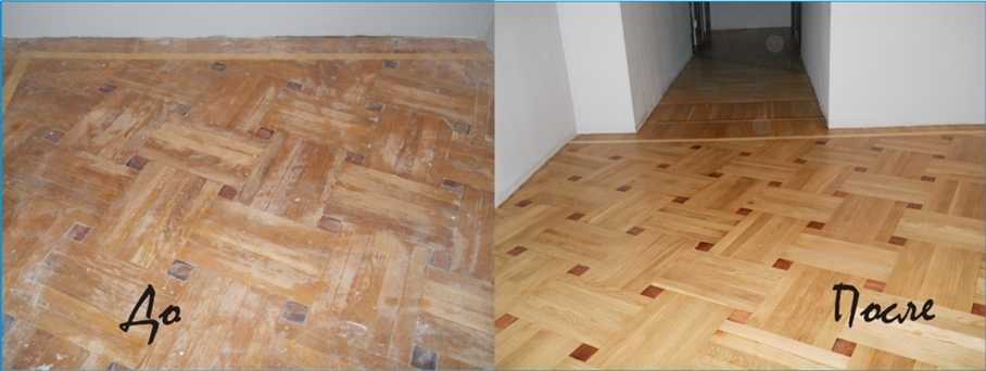 Шлифовка старого паркета – более сложный процесс, так как практически каждую планку нужно проверить на целостность, крепление. Поврежденные элементы заменяются, слабо приклеенные – переклеиваются. После окончания работ нужно все покрытие пропылесосить и протереть влажной тряпкой.