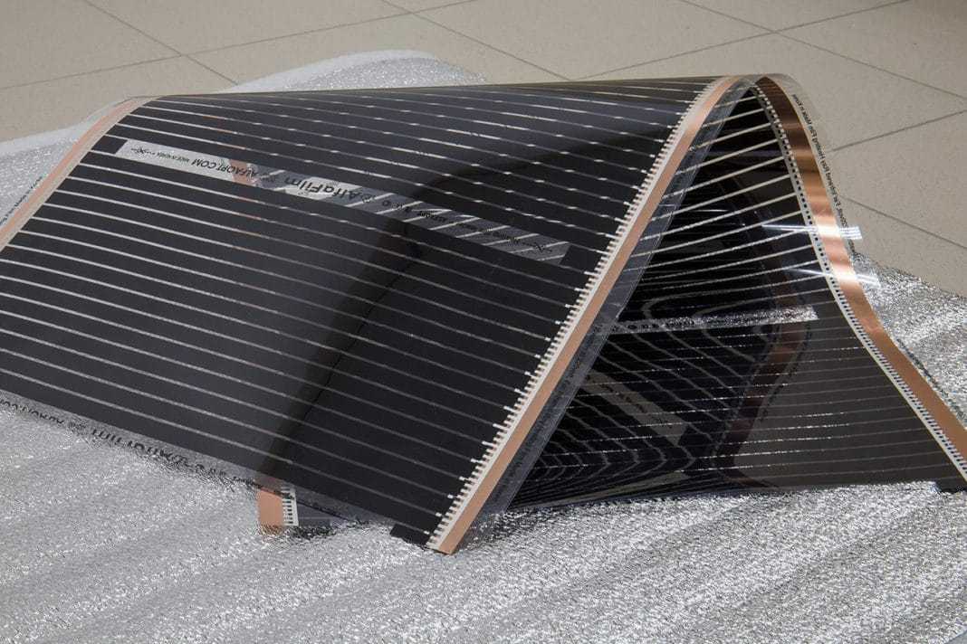 Пленочная модель электрических систем представляет собой плотный целлофан, внутри него расположены медные проводки, а сверху материала находятся графитные полосы. Последние под воздействием электричества создают инфракрасное излучение, которое нагревает не воздух, а напольное покрытие.